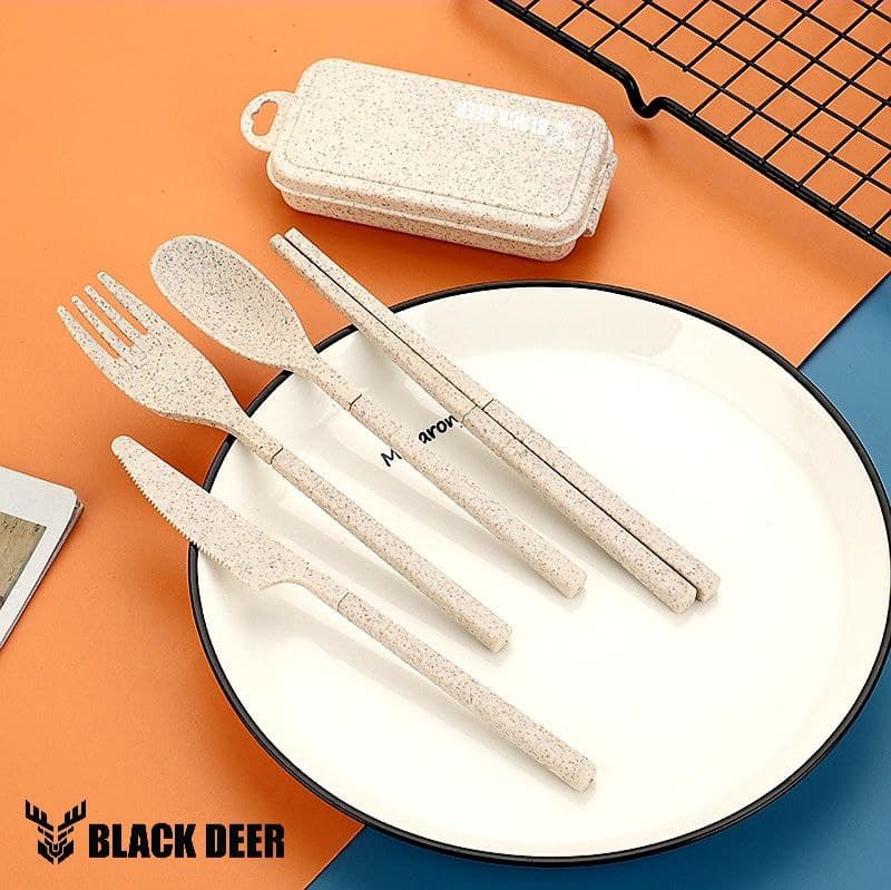 ست قاشق ، چنگال ، کارد و چاپستیک گیاهی BLACK DEER یک ست جمع و جور و بسیار کاربردی است که از جنس ساقه گیاه گندم تهیه شده و آسیبی به سلامت انسان وارد نمیکند. علاوه بر این ، این ست مسافرتی بلک دیر سازگار با محیط زیست بوده و نیز قابل بازیافت است که این ویژگی برای طرفداران محیط زیست اهمیت ویژهای دارد .