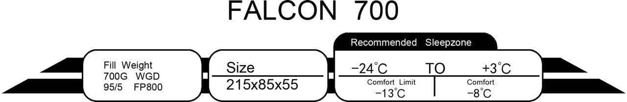 کیسه خواب فالکون از 700 گرم پر غاز سفید تشکیل شده است و همچنین نوع زیپ استفاده شده در این کیسه خواب YKK می باشد . وزن کلی این کیسه خواب کوهنوردی 1100 گرم می باشد .