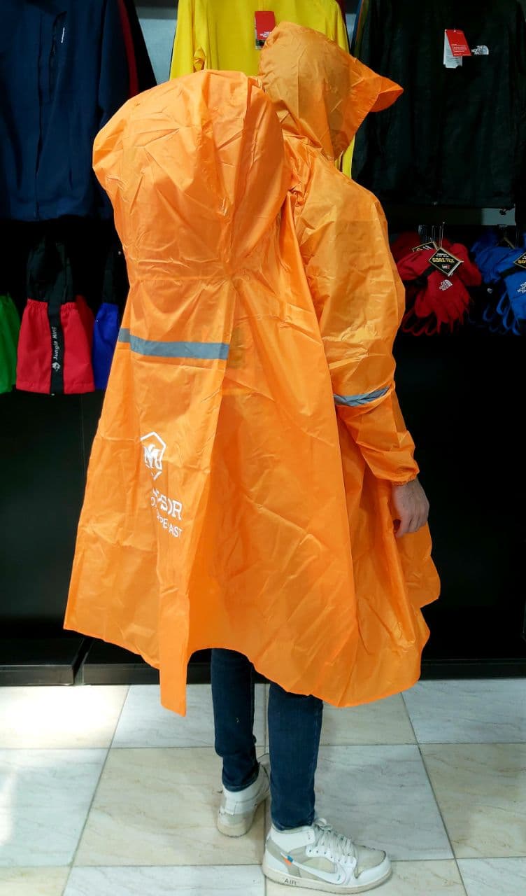 جنس پارچه بکار برده شده در تهیه ی این پانچو آستین دار ، پلی استر ضد آب بوده که از مقاومت خوبی در برابر باران برخوردار است. همچنین درز های آب بندی شده آن مانع نفوذ آب و خیس شدن لباس هایتان میشود .