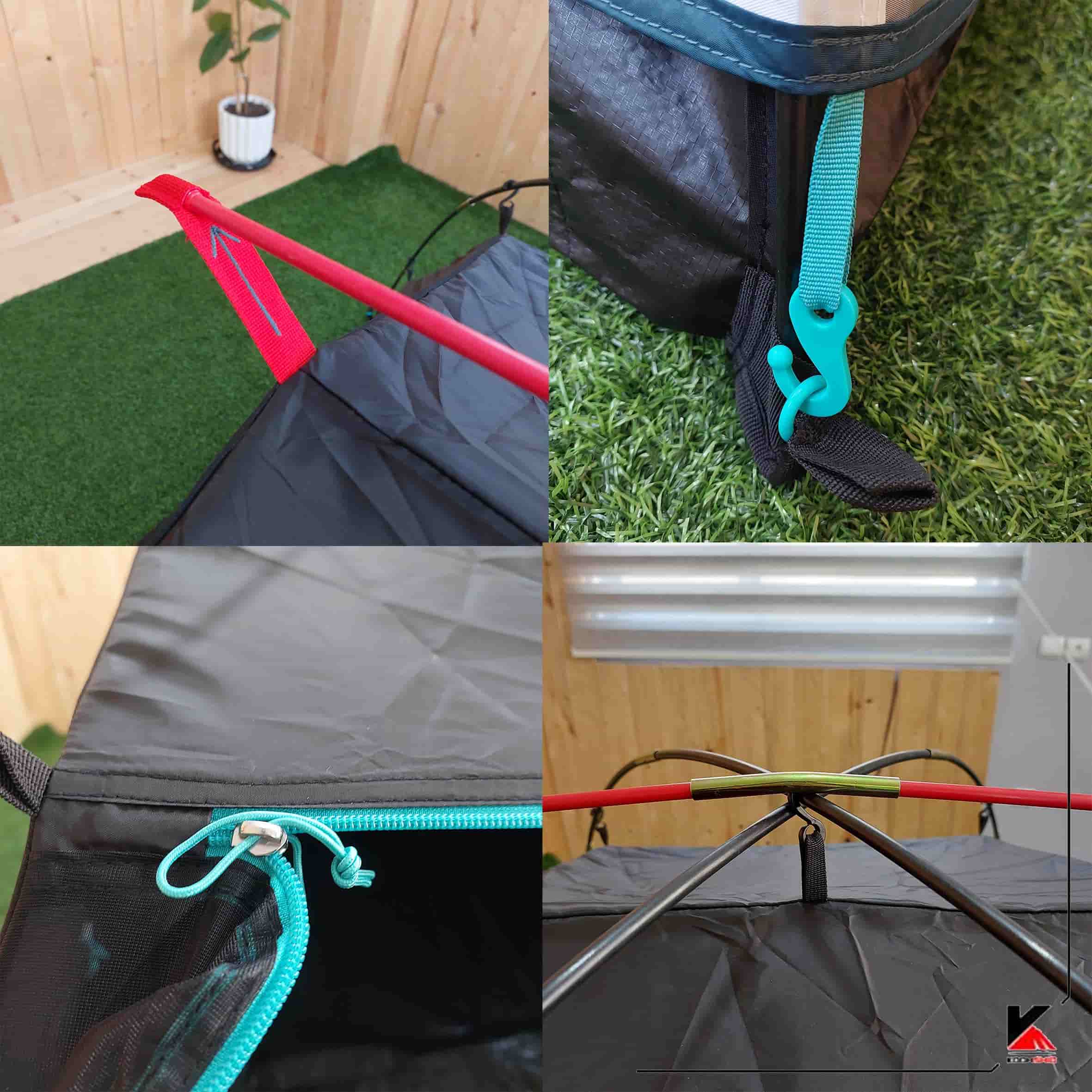 چادر کوهنوردی کچوا را میتوانید به راحتی با اتصال پایه های آن بصورت ضربدری و ایستاده در مدت زمان کمتر از 5 دقیقه برپا کنید.