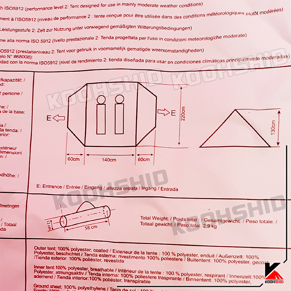 مشخصات فنی چادر کوهنوردی بست وی مدل calvino X2