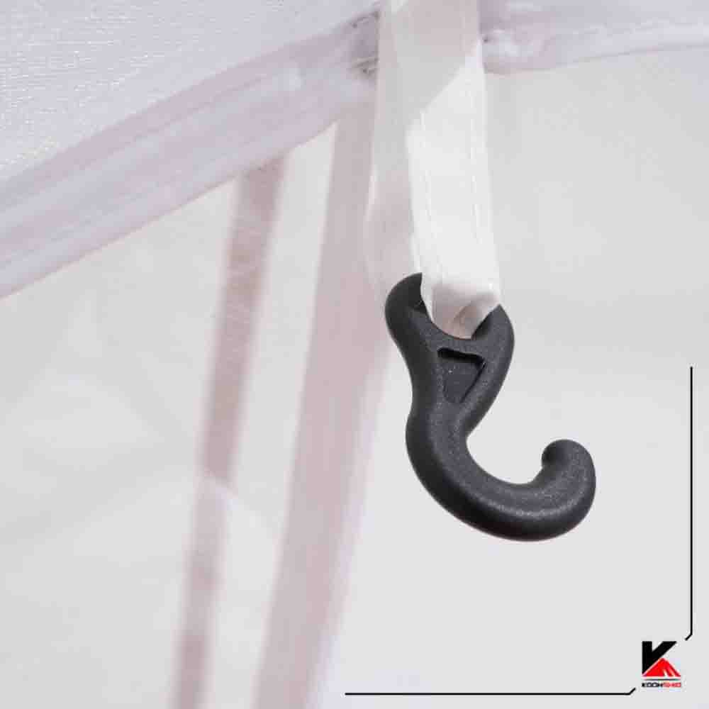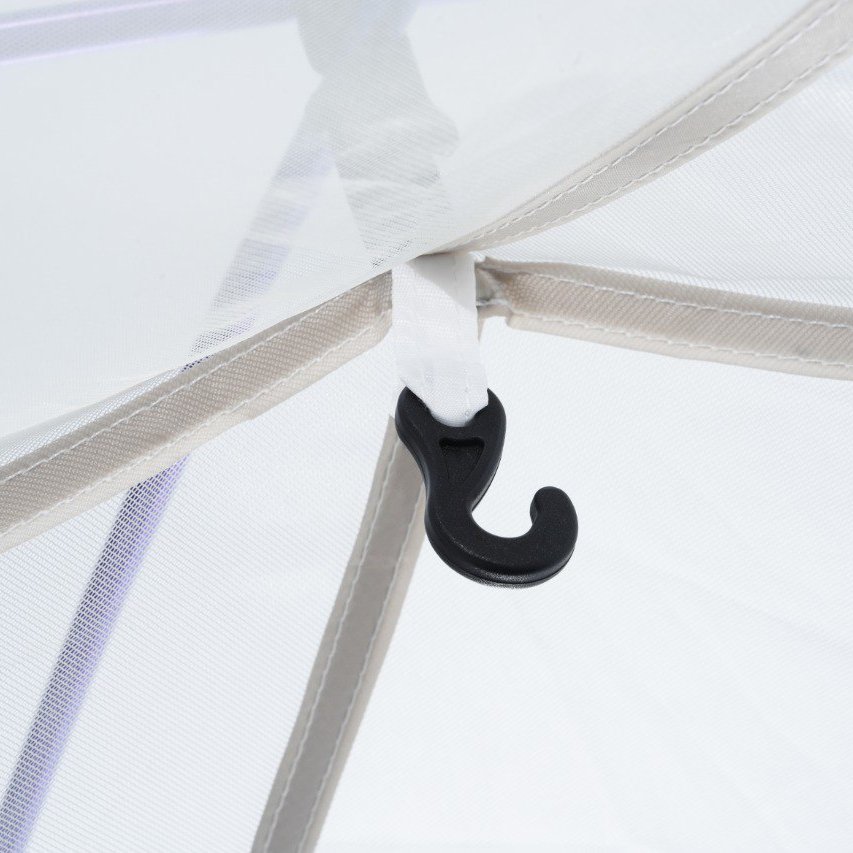 سگک ها و بندهای این چادر بصورت اتصال خارجی است که سبب راحتی بستن و اتصال آن میشود. در داخل این لایه دو جیب تعبيه شده که محل قرار گیری وسایل مهم و ضروری شما است. همچنین درب این چادر بصورت یک لایه، یعنی ترکیبی از تور و پارچه پلی استر میباشد.