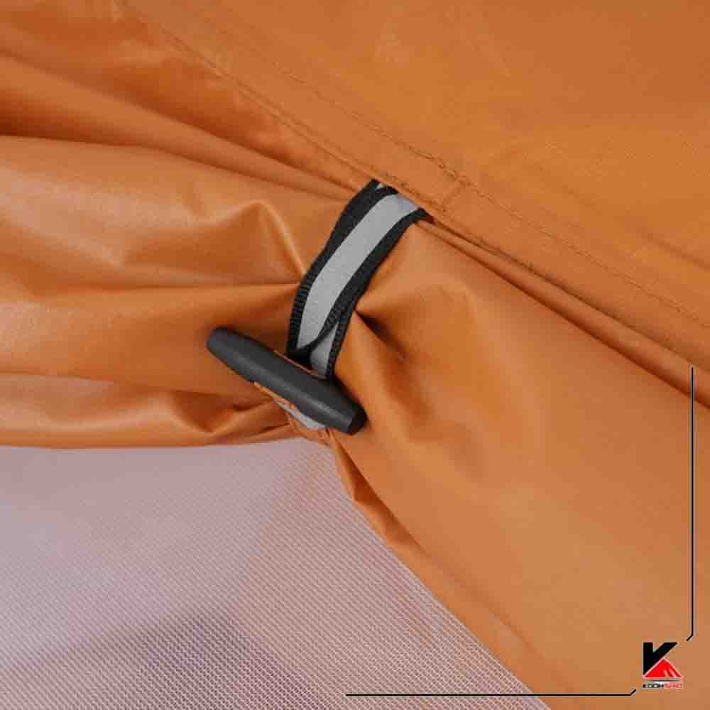 در چهار طرف چادر، روی پوش خارجی طناب های اضافی برای شرایط بحرانی و باد شدید طراحی شده است که با میخ های اضافی موجود در این محصول میتوانید آن را به زمین فیکس کرده و مانع حرکت یا تکان خوردن چادر شوید.