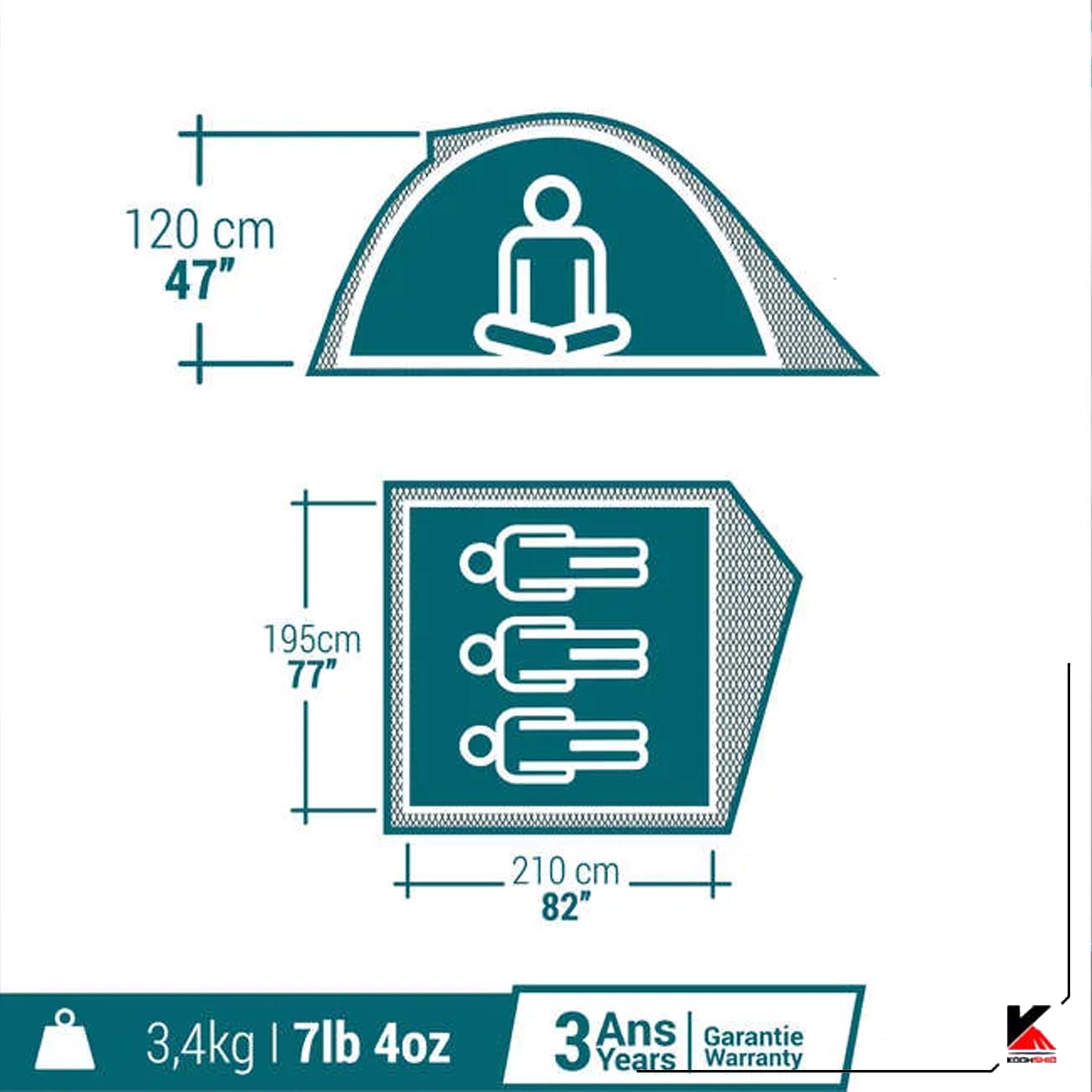 مشخصات فنی چادر 3 نفره کچوا مدل MH100
