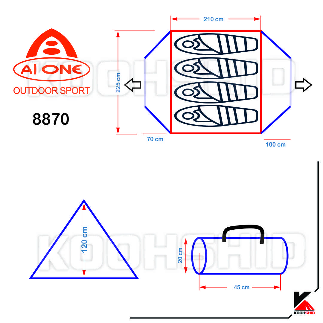 مشخصات چادر دو پوش ضد آب کوهنوردی اورجینال آیوان مدل 8870 Ai ONE